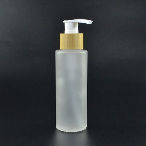120ml Glasflasche Kosmetik set Milchglas Bambus Spray Pump Lotion Flasche